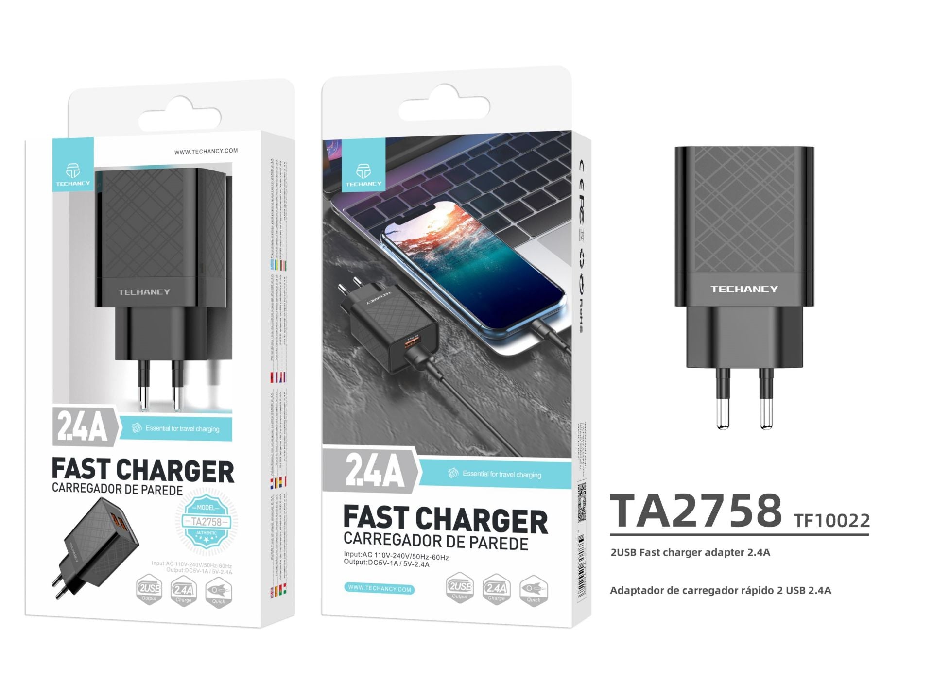 CARICABATTERIA DA MURO PER SMARTPHONE TABLET 2.4 AMPERE NERO