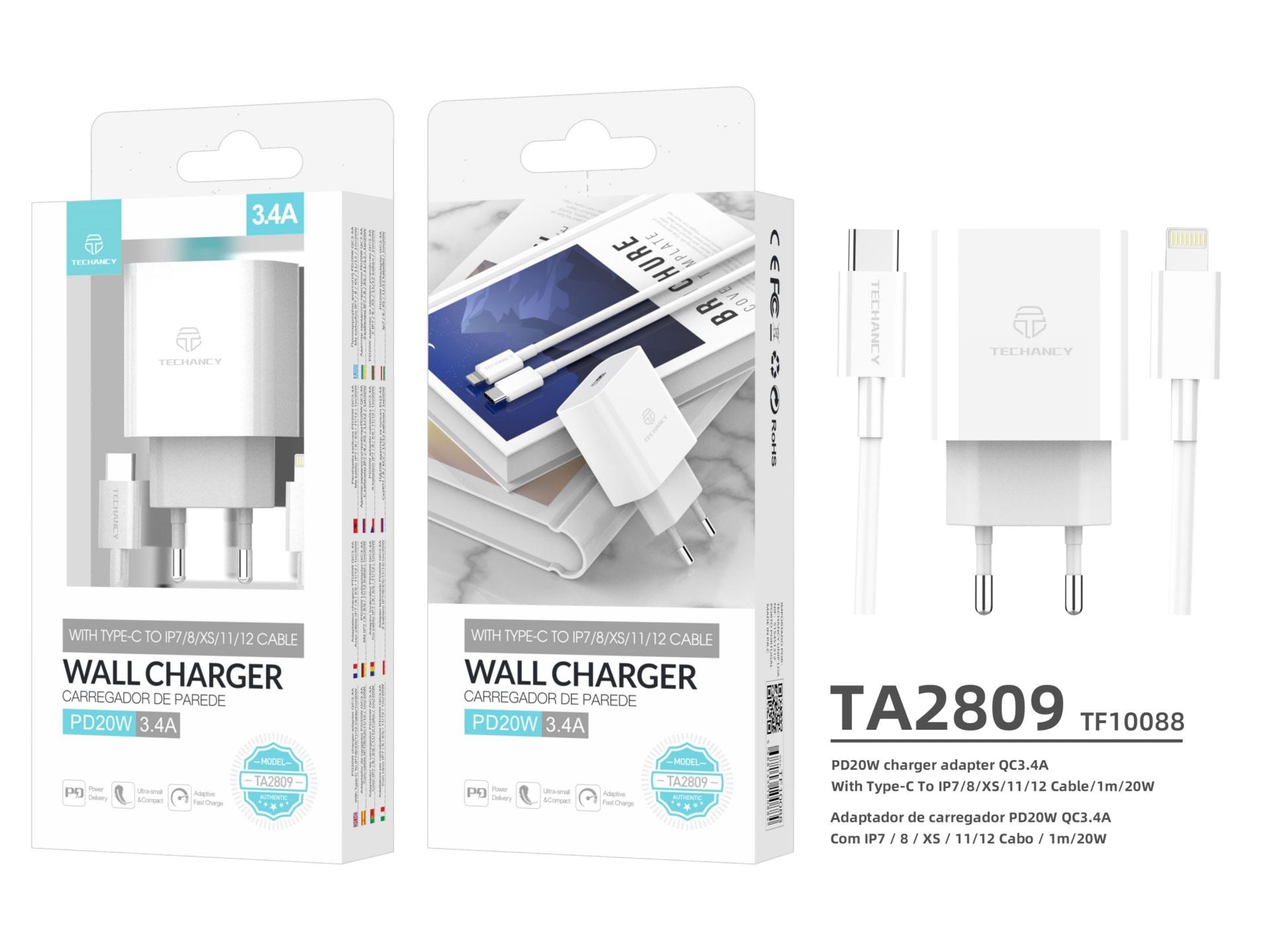 Caricabatterie rapido Pd 20W + cavo Ip Pd 20W 1M bianco