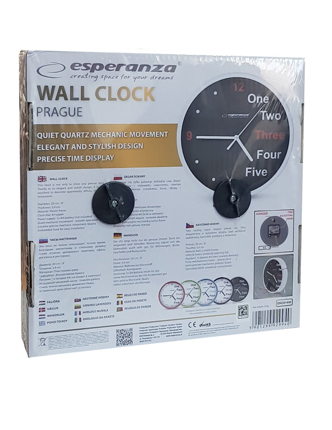 Orologio da parete marca Esperanza. Diametro 20cm. Materiale plastica. batteria AA non inclusa. Colore Nero e grigio