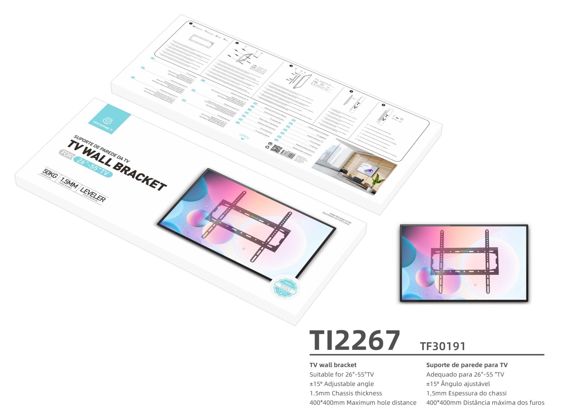 STAFFA A MURO PER TV 26/55" TECHANCY